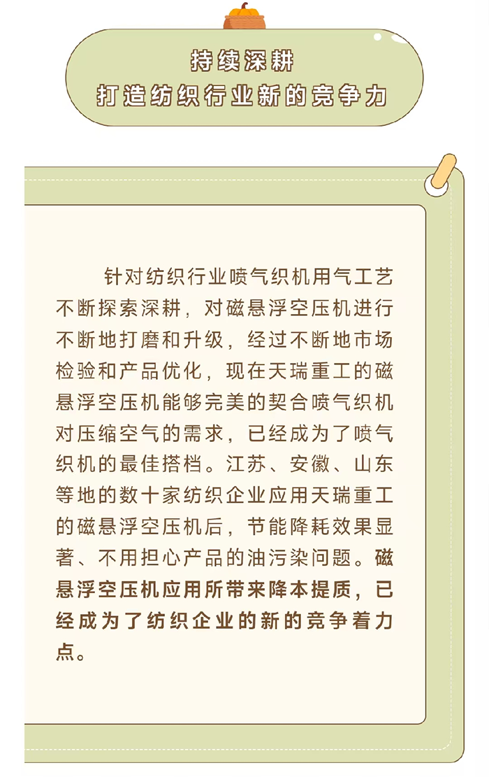 天瑞重工磁懸浮空壓機:紡織行業噴氣織機的拍檔