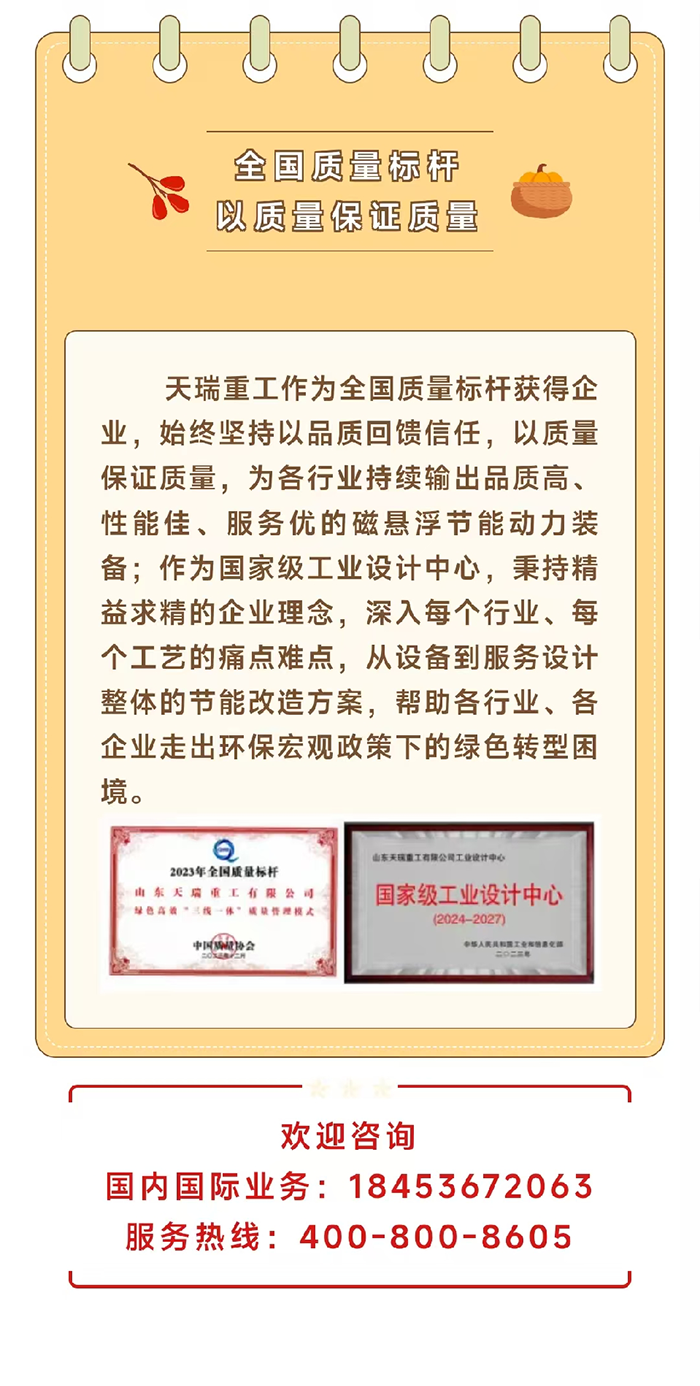山東天瑞重工有限公司是一家從事磁懸浮動力技術研發的高新技術企業,是國家企業技術中心,全國磁懸浮動力技術標準化工作組秘書處單位,山東省節能環保裝備產業鏈“鏈主”。