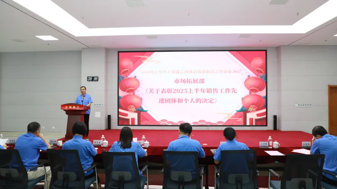 7月6日,天瑞重工2025年上半年銷售總結表彰及工作部署大會在公司會議大廳舉行,公司各領域專家、各部門領導及市場拓展部有關人員參加了會議。會議總結了公司上半年市場銷售的工作成績,表彰了先進團體和個人,明確了下半年發展目標和方向。公司總經理鄭鐵民主持會議,公司首席科學家李永勝發表講話。